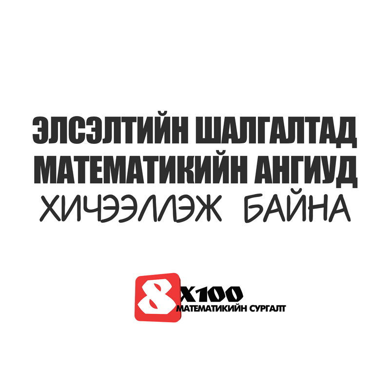 -д суурилсан ЭШ-н цахим анги-уд 2025.09.29-нд эхэлнэ. Монгол орны өнцөг булан бүрээс хамрагдах боломжтой тус ангиудад ЭШдээ амжилттай оролцохыг хүсч буй 11, 12-р ангийн сурагчид бүртгүүлээрэй.Монгол орон даяар ашиглагдаж буй математикийн сургалтаар тэргүүлэх цахим платформ. 8x100 математикийн сургалтын хөтөлбөр, багш нартайгаар хичээллэж ЭШдээ бэлдэнэ.